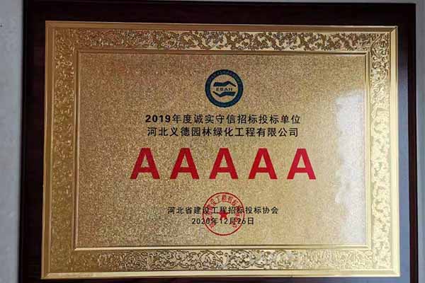近幾年來(lái)我公司被授予2019年-2022年河北省扶貧龍頭企業(yè)、2018年國(guó)家林業(yè)標(biāo)準(zhǔn)化示范企業(yè)、2019年度全國(guó)苗圃50強(qiáng)、2018-2019年度河北省林業(yè)重點(diǎn)龍頭企業(yè)、2018年保定市精品特色現(xiàn)代農(nóng)業(yè)園區(qū)、2018年度保定林木種苗協(xié)會(huì)授予特色苗圃、2018年度北方十佳特色苗圃、2016-2019年河北省建設(shè)工程招標(biāo)投標(biāo)誠(chéng)實(shí)守信5A級(jí)施工企業(yè)等榮譽(yù)稱(chēng)號(hào),2017年保定市林木種苗龍頭企業(yè)、石家莊市2017年度優(yōu)秀園林企業(yè)。